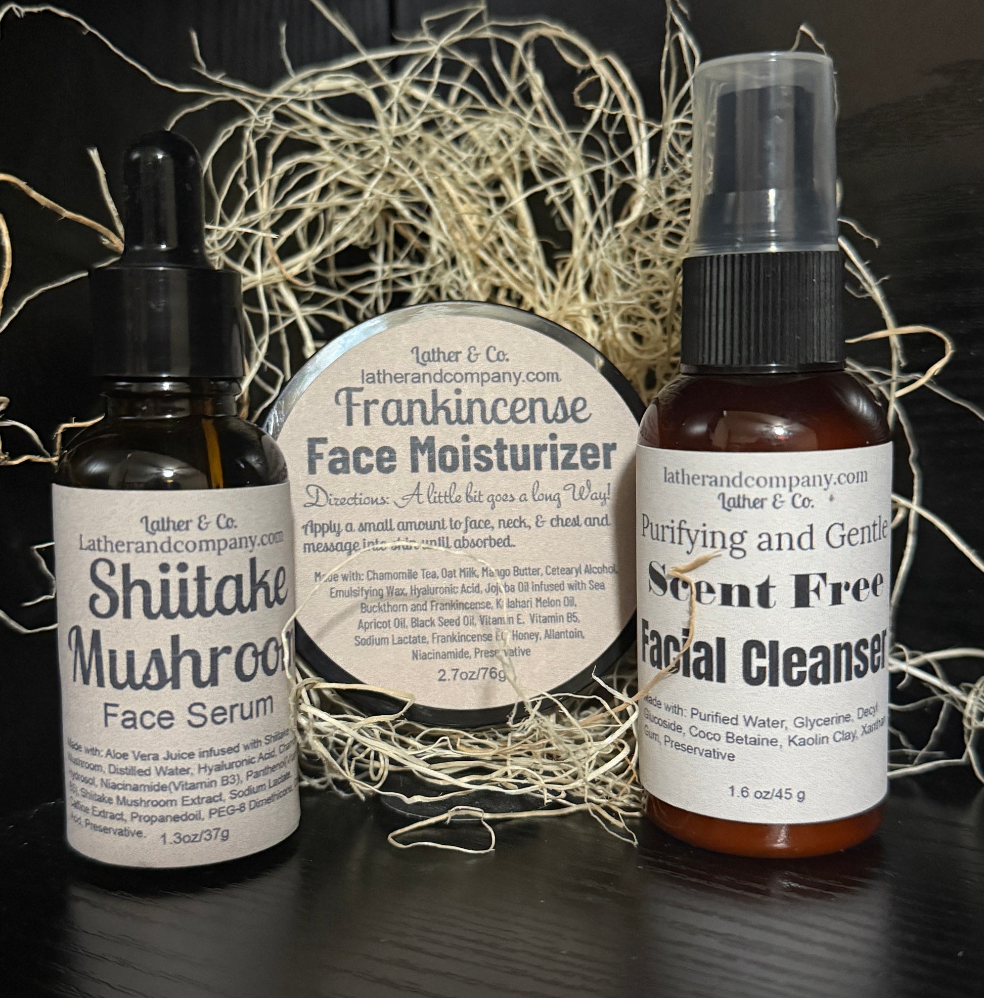 We are currently offering an all natural scent free facial cleanser, a Shiitake Mushroom face serum, and our fabulous Frankincense Face Moisturizer.